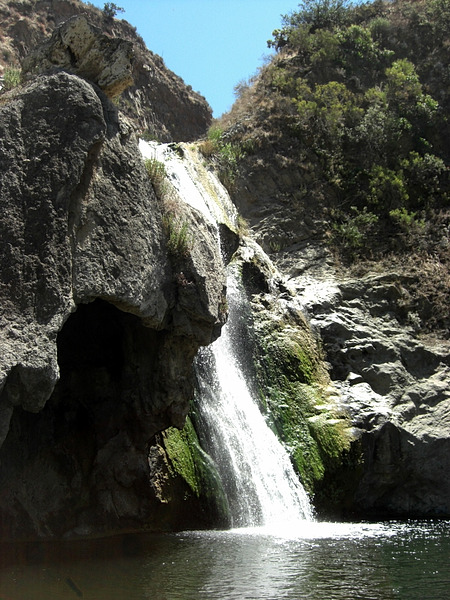 A lovely 40 foot (12.2 m) high waterfall nestled in a canyon of Wildwood Park. Unfortunately swimming and climbing around the waterfall is prohibited. Though the water is cold and clear, and deep enough for someone to jump in, there is an advisory against swimming in the creek, which is feed by both natural springs and street runoff (yuck).