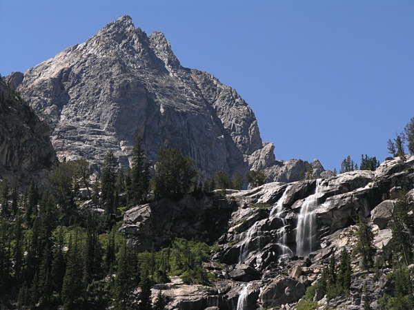 Shoshoko Falls is a cascade located in Avalanche Canyon, Grand Teton National Park in the U.S. state of Wyoming. The cascade drops over 200 feet (61 m) and is intermittent, fed by runoff from snowmelt and is near the outlet of Taggart Creek from Lake Taminah.