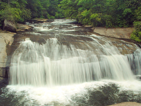 Turtleback Falls, also called Umbrella Falls, is a waterfall in Western North Carolina, located near Brevard. The falls is located on the Horsepasture River in the Pisgah National Forest. The falls is usually accessed by a hike starting in Gorges State Park which passes through Pisgah National Forest property. Turtleback Falls is a popular place for swimming and people frequently slide over the falls into the Chug Hole during low water; however, the currents can be dangerous in higher flows and people have drowned at Turtleback, or have been swept downriver and over 125' Rainbow Falls.