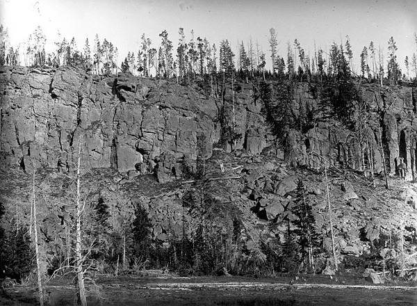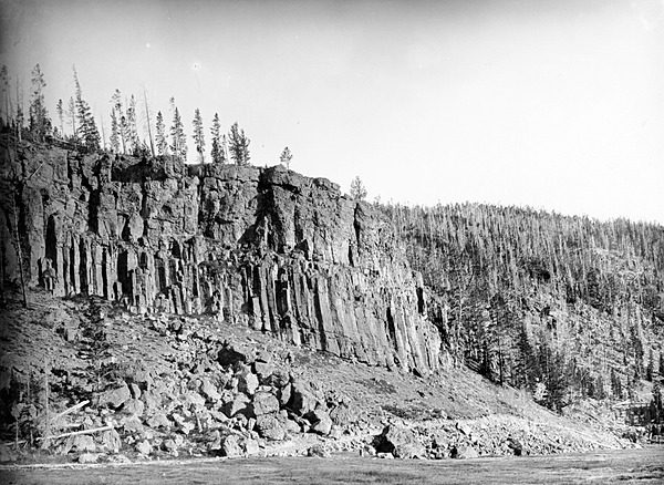 Photographs above depict: Columnar structure at the southern end of Obsidian Cliff. Yellowstone National Park, Wyoming. ca. 1884. Joseph Paxson Iddings (USGS)