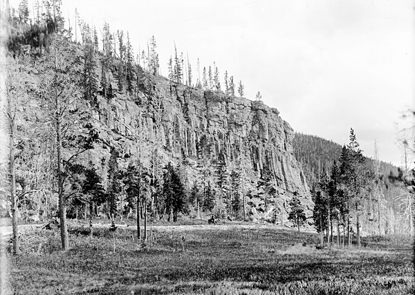 Top of obsidian columns, Obsidian Cliff. Yellowstone National Park, Wyoming. ca. 1884. Portion of this photo published as plate 17-B in U.S. Geological Survey. Water-supply paper 489. 1923; drawing of this photo published as plate 40 in U.S. Geological Survey. Monograph 32, pt. 2. 1899; plate 10 in U.S. Geological Survey. Annual report, no. 7, 1885-1886. 1888. Joseph Paxson Iddings (USGS)