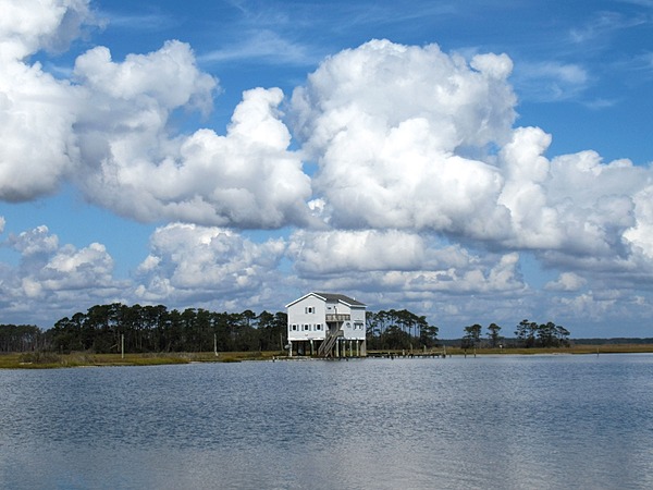 Coastal Salt Marsh with One Inappropriately Located house. Seen from George Island Landing Road